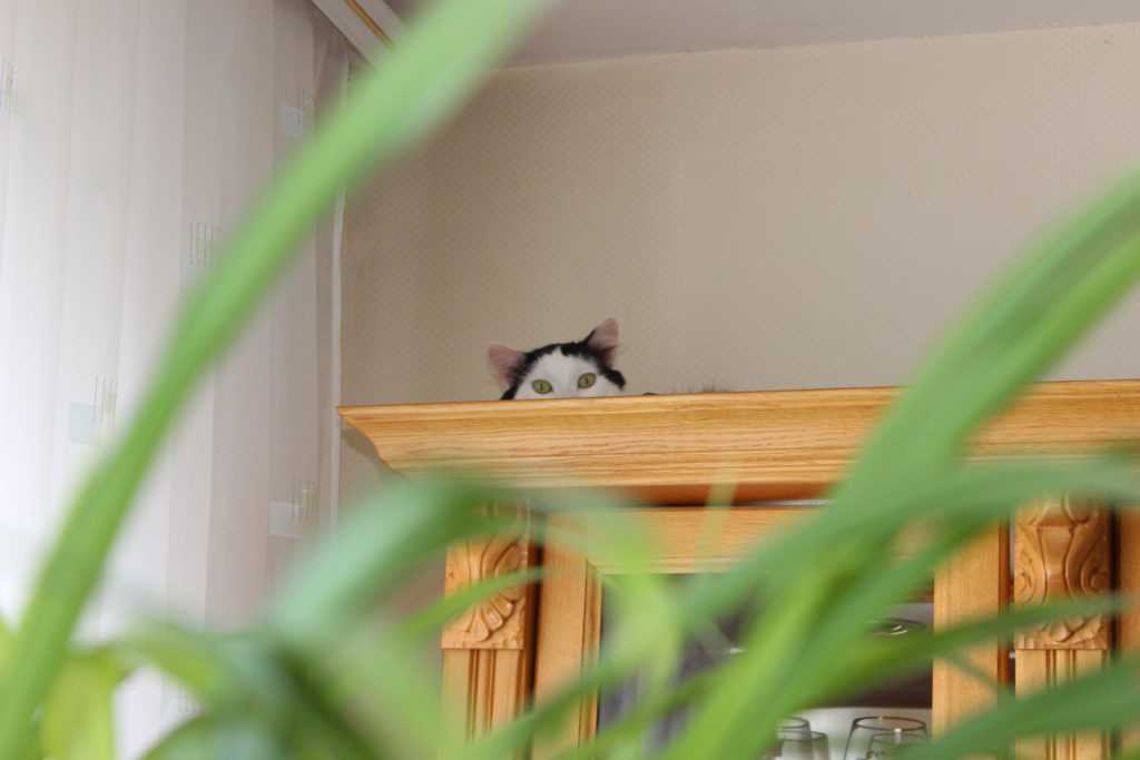 2. Посмотреть сверху на шкафах, сервантах, стенках. Возможно именно оттуда ваш питомец внимательно наблюдает за вашими действиями.