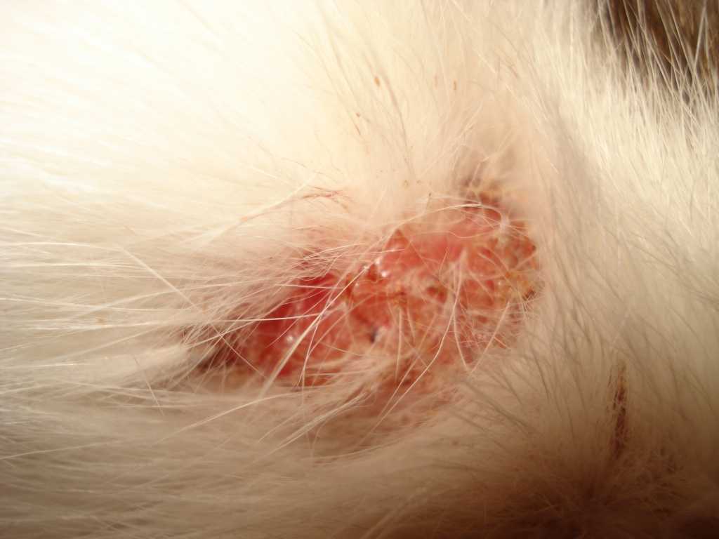 - Локализация отмечается на участках тела с наиболее короткой шерстью. Если на очаги болезни попадают другие микроорганизмы, возникает угроза сепсиса.