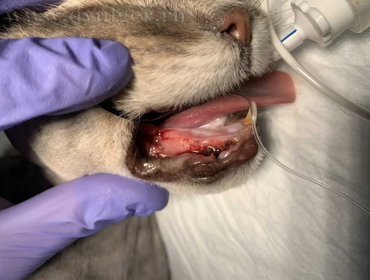 IV стадия: опухоль изъязвляется, в размерах увеличивается от 5 см и более, отмечается выраженная реакция лимфоузлов (становятся большими и болезненными), уже могут быть метастазы, вскрывшиеся раны источают резкий, гнилостный запах. Животное сильно угнетено, не ест, отсутствует жажда, в зависимости от локализации и размеров новообразования может нарушаться акты дефекации и мочеиспускания. Удаление опухоли у кошки на этом этапе чаще всего нецелесообразно.