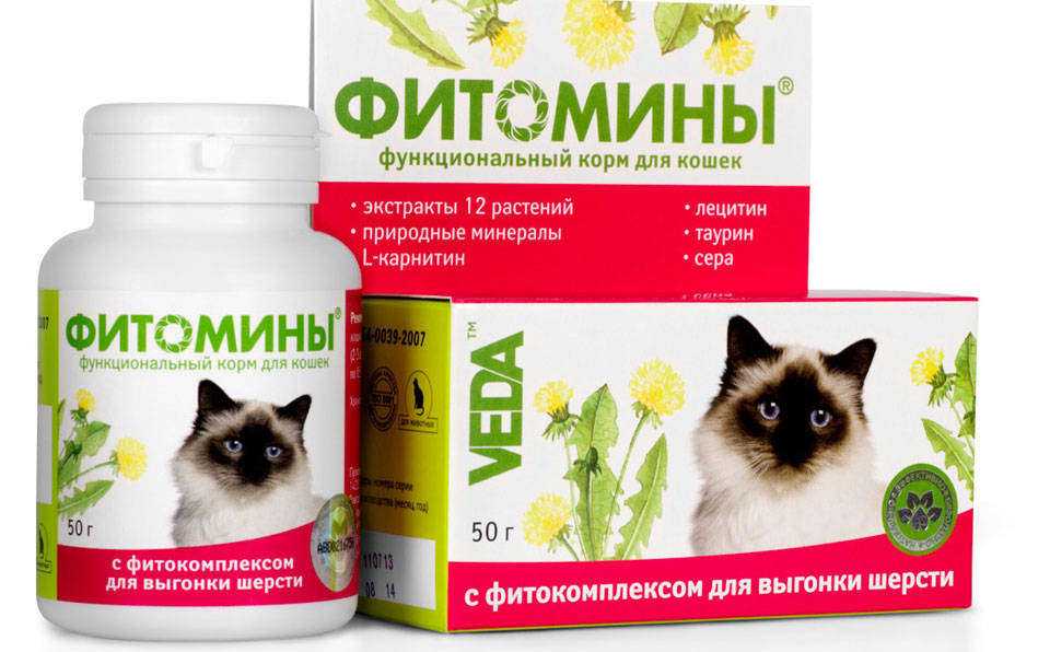 Эффективное средство для выведения шерсти из желудка – таблетированные фитопрепараты. На рынке российских зоотоваров они представлены линейкой «Фитомины» бренда «VEDA». Таблетки оказывают комплексное воздействие: они не только выводят трихобезоары, но и способствуют укреплению шерсти, препятствуя ее выпадению. Такой эффект достигается благодаря наличию в составе витаминов, микроэлементов, лецитина, таурина, L-карнитина.