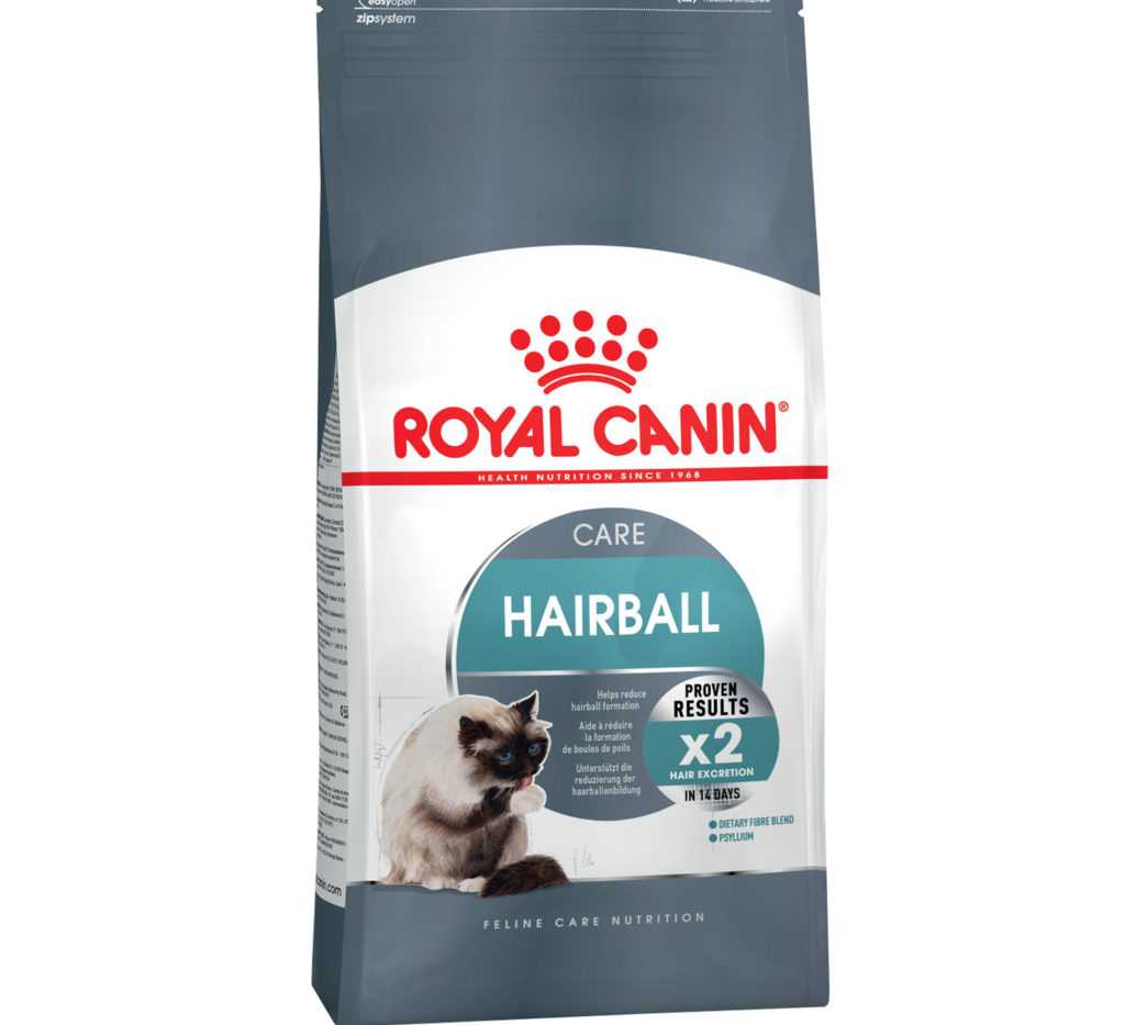 - «Hairball Care» («Royal Canin»). Кроме необходимых витаминов и полезных микроэлементов, содержит клетчатку и семена подорожника. Способствует бережному удалению свалявшихся шерстинок. Продается почти во всех супермаркетах и зоомагазинах. Подходит для взрослых кошек в возрасте 1–6 лет.
