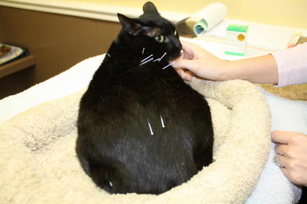 - Иглоукалывание. Акупунктура направлена на снижение спазмов и купирование боли. Этот метод физиотерапии должен использоваться опытным специалистом. Осуществляют процедуру, когда животное находится в состоянии покоя. Добиться этого позволяют успокаивающие препараты или наркоз.