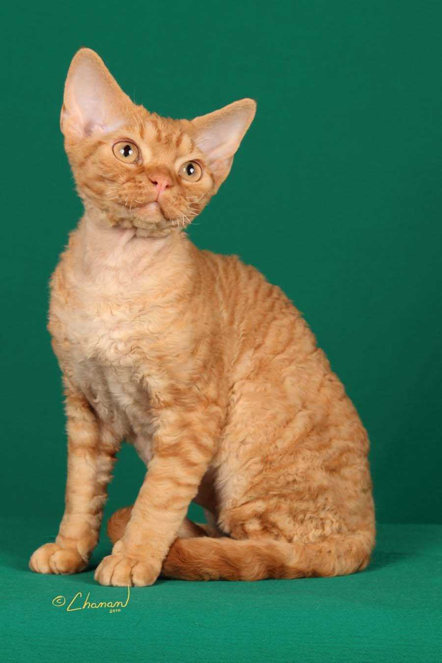 В Англии родились и другие кудрявые кошки — порода девон-рекс, фото которой вы видите, лишь немногим «моложе» корнишей. 9 лет спустя после Каллибанкера, 15 июля 1959 года, в графстве Девоншир был найден котёнок с завитушками. Малыш, которого назвали Керли (Кирли) был подобран в окрестностях заброшенной угольной шахты и позднее стал родоначальником новой девонской породы.