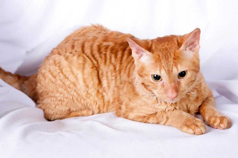Заметив в помёте необычного рыже-белого малыша, хозяйка фермы Нина Эннисмор хотела его кастрировать. К счастью, от этого опрометчивого шага её отговорил ветеринарный врач, который объяснил, что вьющаяся шерсть — это не признак болезни, а результат мутации, в результате которой у кошек отсутствует остевая шерсть, так что кот вполне может послужить родоначальником новой породы.