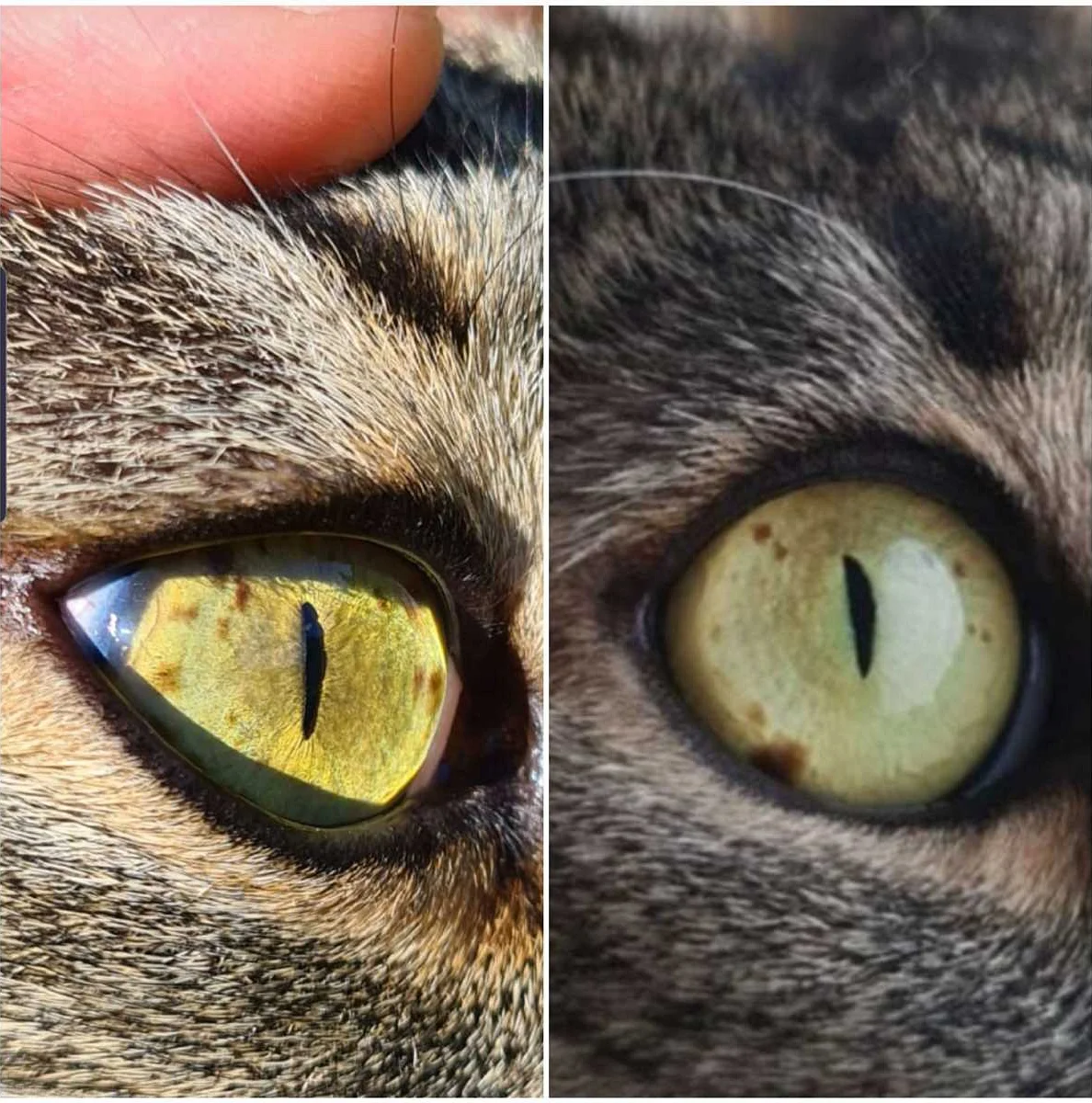Не у всех кошек с шунтом печени глаза цвета меди. Внезапные изменения цвета глаз требуют немедленной помощи ветеринара. Изменение цвета глаз у взрослых кошек всегда вызывает беспокойство. Если цвет глаз вашей кошки изменился внезапно или в течение определенного периода времени, как можно скорее обратитесь к ветеринару.