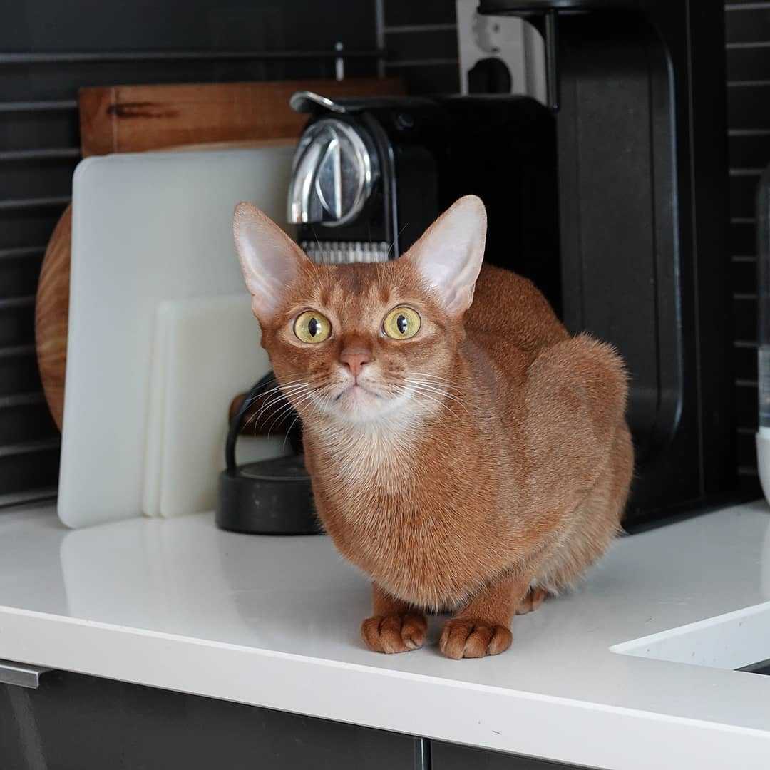 Нельзя оставлять абиссинца на кухне, где включена плита, не стоит оставлять на столах бьющиеся вещи вроде стеклянных ваз.