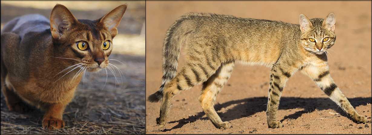 На фото: слева – абиссинская кошка, справа – ливийская степная кошка