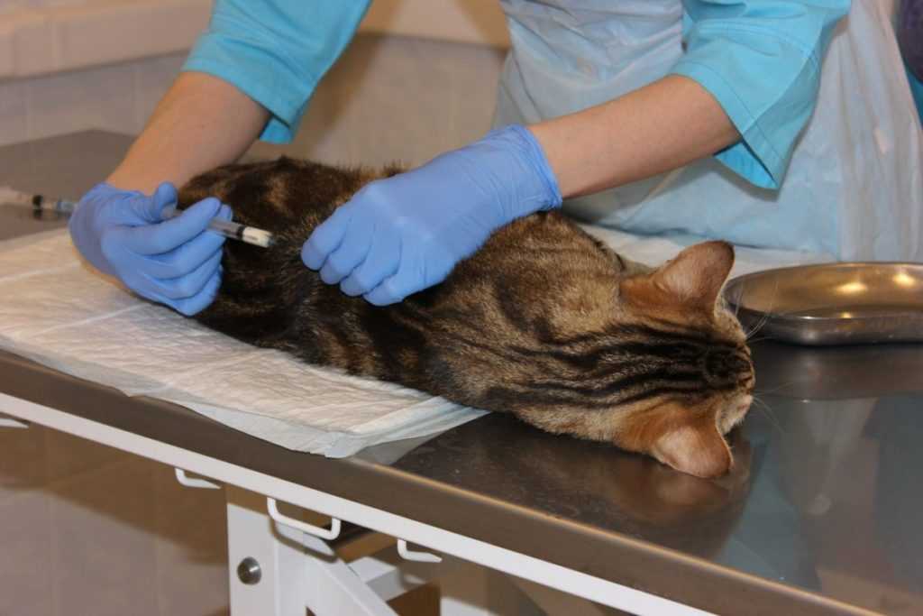 Перед операцией ветеринар подготавливает необходимые инструменты, дезинфицирует их и все поверхности, надевает стерильные перчатки. Кошке делают несколько уколов, и она засыпает. На участке тела, где будет сделан разрез, сбривают шерсть, кожу обеззараживают. После этого начинается операция.
