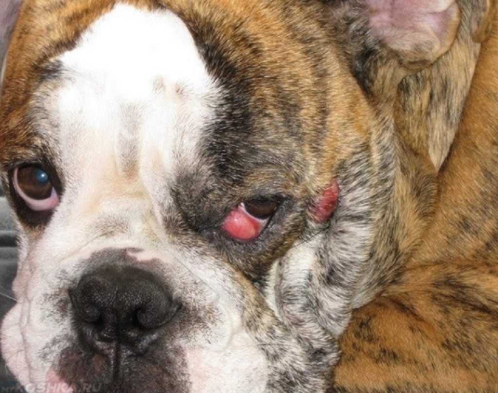 Во внутреннем углу глаза Вашего питомца Вы можете заметить шарообразную или бобообразную припухлость розового или красного цвета. Поверхность этой шарообразной области может быть гладкой или в шероховатых пупырышках (это изменённые лимфатические фолликулы), возможна некротизация и образование корочек. Конъюнктива глаза красная, наблюдается слезотечение, возможны слизистые или гнойные выделения.