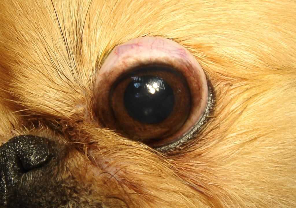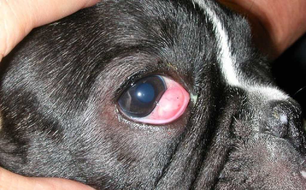 Диагностировать пролапс не составит труда – значительная часть глаза перекрыта мигательной перепонкой. Зачастую от пересыхания мембрана имеет заметные покраснения. Заболевание невозможно излечить самостоятельно, необходимо хирургическое вмешательство.