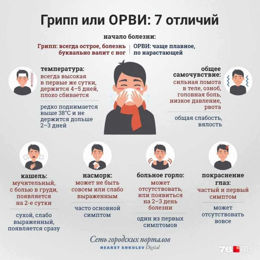 После появления симптомов острой вирусной инфекции, нужно обратиться к врачу сразу, так как определить, насколько опасна инфекция, может только специалист. Помимо респираторных инфекций, можно заболеть гриппом, дающим тяжелые осложнения. Если через 5 дней лечения вы не чувствуете себя лучше, нужно срочно обратиться за помощью к врачу ещё раз.