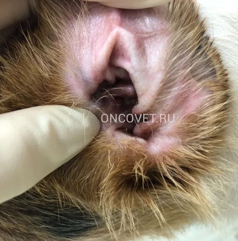 Грибок может поселиться на тонкой безволосой коже внутренней поверхности ушей и в ушной раковине – тяжелый запах, расчесы, утолщенная воспаленная кожа. Но ушной грибок у собак – это не самостоятельное заболевание, а осложнение или следствие. Споры в соскобе из уха обнаруживают при аллергиях, отите, бактериальных инфекциях, при наличии паразитов (клещи, блохи), патологиях иммунитета. Т.е. нечто привело к росту количества грибка, и этот фактор необходимо устранить или взять под контроль.
