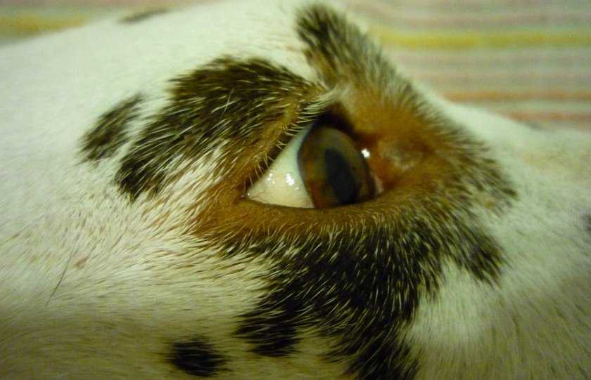 - Важным клиническим симптомом является появление на глазах у собаки кератита, другое название «Голубой глаз». Это происходит из-за воспаления роговицы глаза. Она становится шероховатой с голубым оттенком.