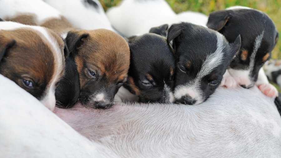 Фото: Джек Рассел терьер кормит щенков | Dreamstime.com
