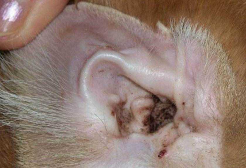 Если начала образовываться коричневатая сера, то значит, животное заразилось ушным клещом.