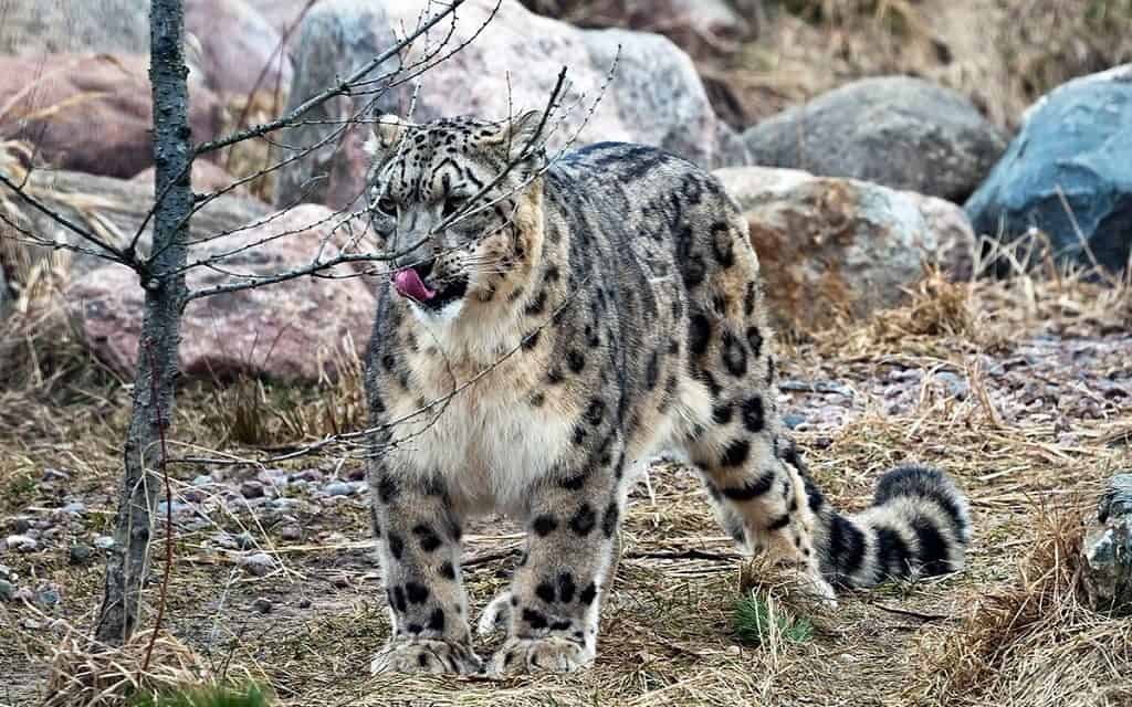Основное приспособительное свойство ирбиса – это окрас. Преобладающий оттенок шерсти – дымчато-бурый с узором из темных пятен разных размеров. Такой внешний вид отлично скрывает снежного барса в естественных местах его обитания: посреди камней, скал, льда и бело-серого снега.