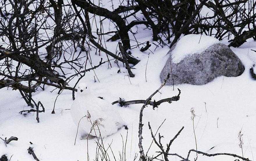 Жители северных широт также неплохо приспособились к тому, чтобы прятаться в снегах. Песец, например, к зиме линяет, его мех становится не только гуще и теплее, но и абсолютно белым, поэтому животное может прятаться в сугробах и полностью сливаться с их фоном.