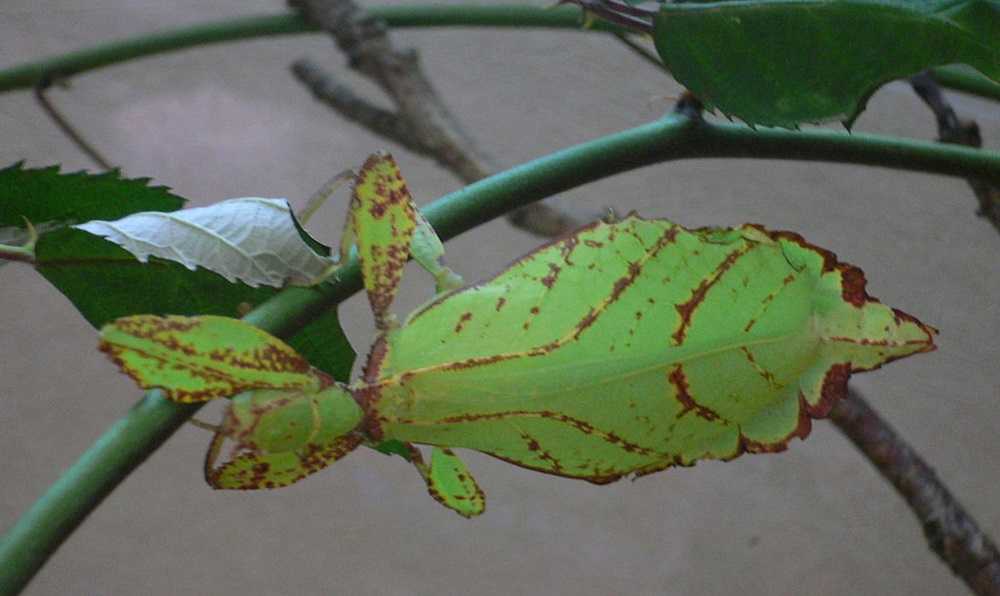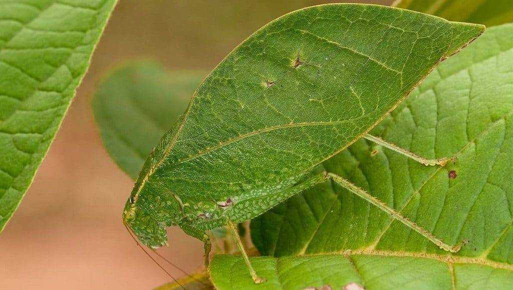 Выставляя напоказ свое название, это насекомое имеет тело, которое можно спутать с зеленым листом, поскольку и его тело, и ноги имеют форму, аналогичную формам листьев деревьев или кустарников. Эта уникальная деталь позволяет им без проблем маскироваться среди зелени.