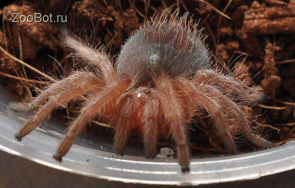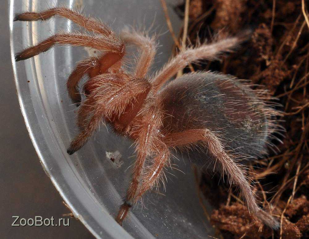 Птицееды очень крупные, размер тела достигает 5-10 см (без учета ног).При этом размах конечностей довольно большой – у взрослых особей 12-28 см.