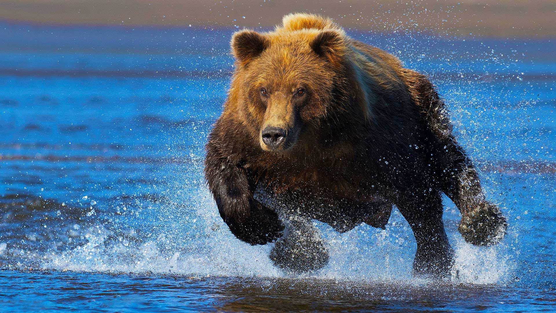 Подплывает медведь к добыче с величайшей осторожностью. Искусно ныряет с открытыми глазами и закрытыми ноздрями, способен быть под водой до двух минут