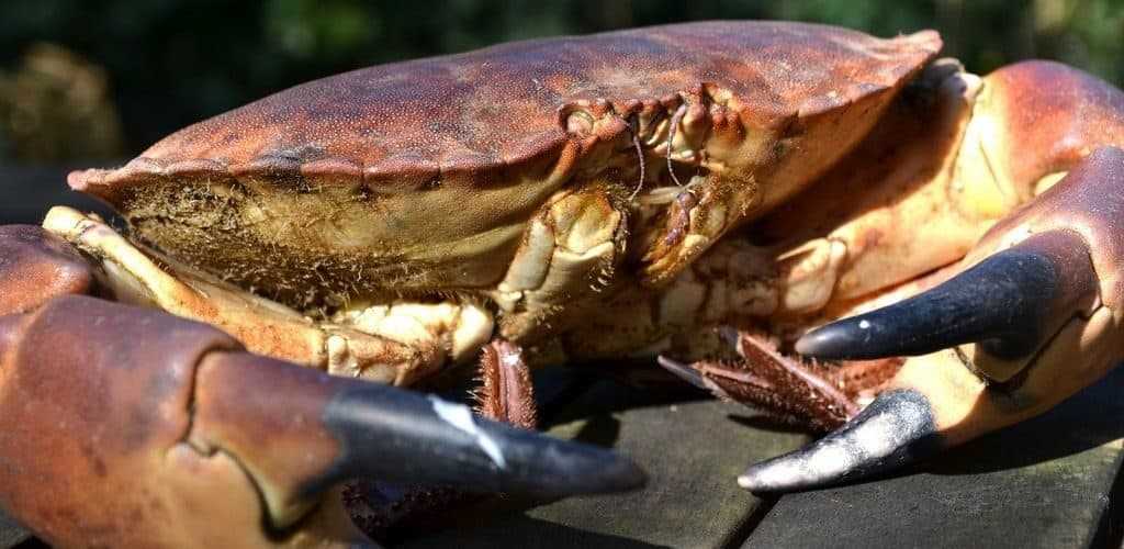 Первая пара ходильных ног снабжена мощными клешнями и, что интересно, размеры их разные – на правой ноге клешня большая, крепкая, а на левой чуть меньше. Объяснение простое – правой клешней краб разламывает крепкие раковины моллюсков, морских ежей, а левой измельчает пищу.
