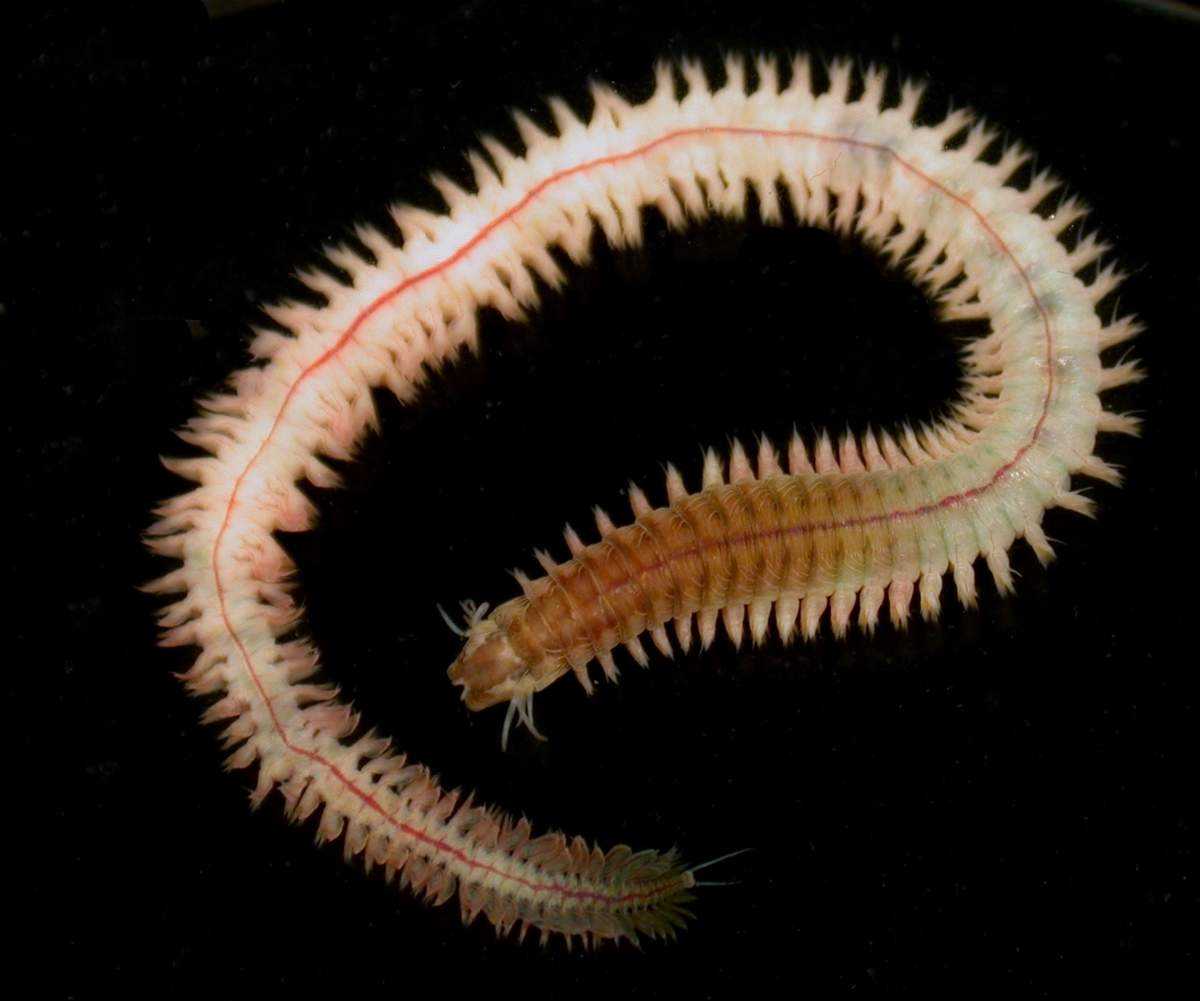 Антарктическая полихета o Мало кто встречал антарктическую полихету в живую. Но, об их существовании стоит знать. Несмотря на некую щетинистую «мишуру», полихета выглядит угрожающе. Один только её рот может привести в неописуемый ужас. Впервые этот вид червя обнаружили в 1939 году на глубине более 600 метров. То, что нам кажется головой на самом деле представляет собой складывающуюся глотку, которая скрывается под щетиной. Когда червь охотится, она выскакивает на 5 см в длину. Острые зубы используются полихетой для охоты и поедания мертвых останков живых существ.