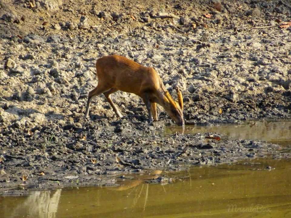 This one was a male barking deer with horns. A first for me! Careful as it was, it would have given a thought at least a thousand times before taking a sip of water. It was fun to sight this animal!