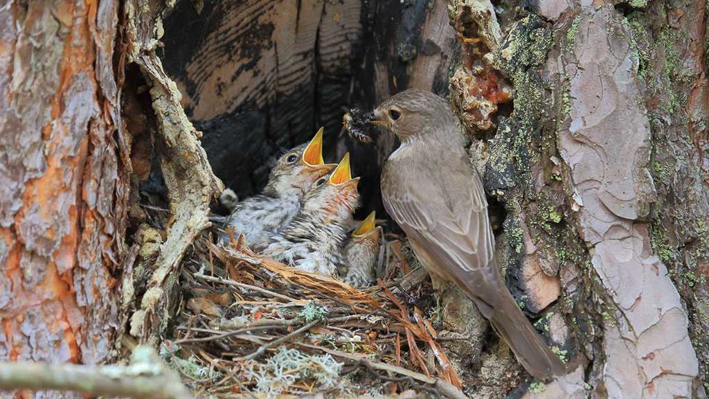 С наступлением весны мухоловки прилетают после зимовки в теплых краях. Свои гнездовья эти пернатые устраивают в лесах самых разных видов: смешанных, лиственных, хвойных. Самое главное для них – чтобы в деревьях были дупла, а в пнях – пустоты, ведь именно эти естественные углубления мухоловки используют для выведения птенцов.