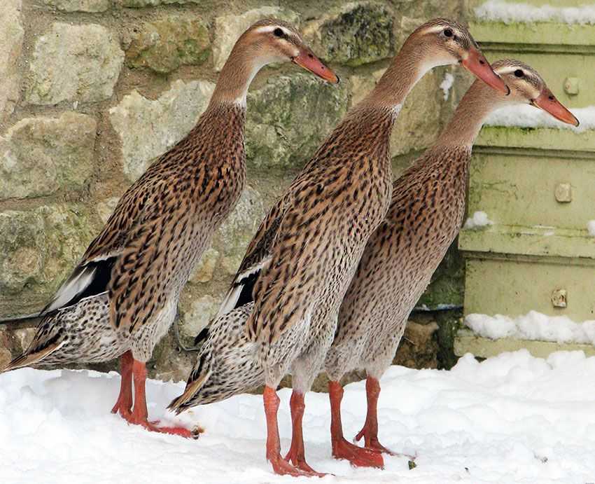 Раньше эта порода домашних уток называлась «пингвинкой» из-за необычного телосложения в форме бутылки. У этих птиц самый неожиданный окрас, который делает их достопримечательностью любого птичьего двора. Внешне, Индийские Бегунки напоминают пингвинов, вот только скорость их передвижения в несколько раз быстрее.