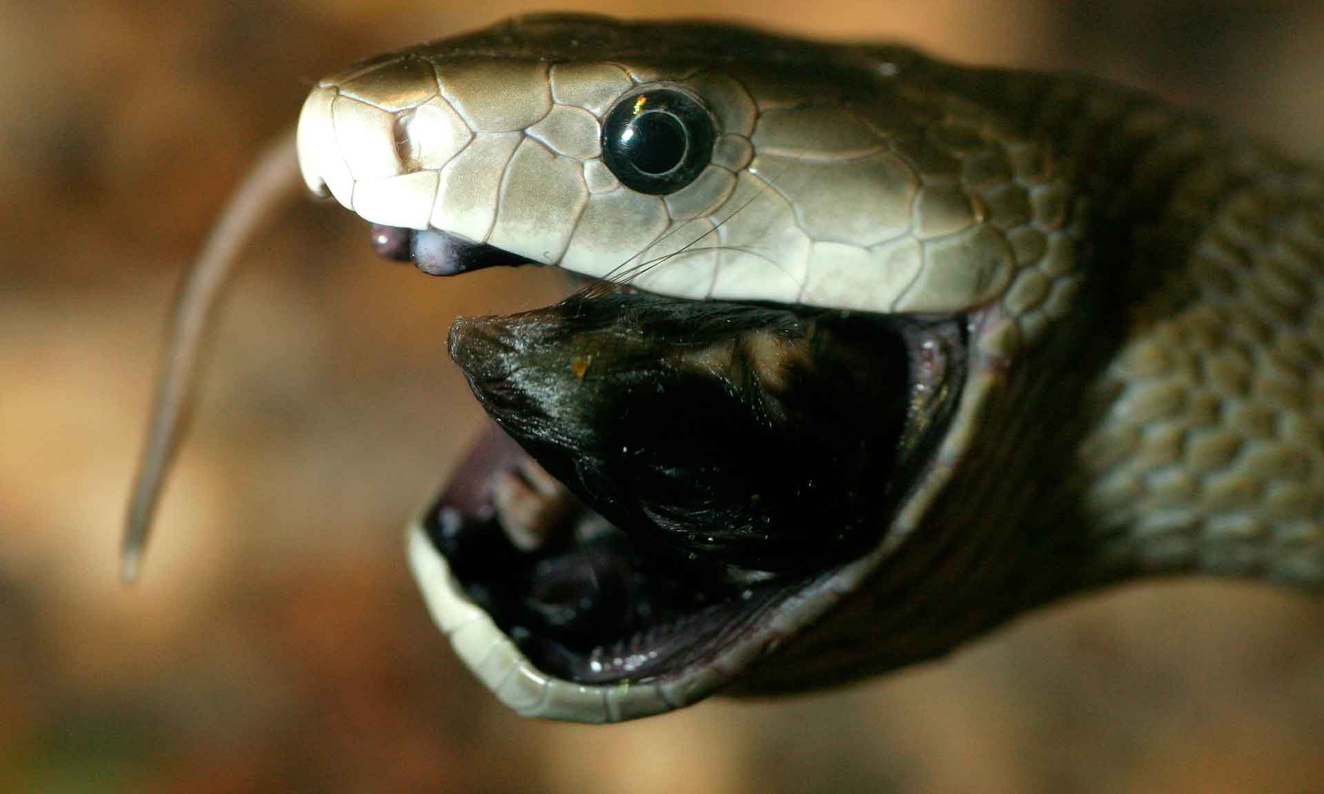 - Черные мамбы — мясоедыУ мамб не так много хищников, поэтому они часами ползают, охотясь в поисках пищи. Из-за своей необычайной скорости черные мамбы вполне способны подстерегать до нужной секунды и быстро приближаться к своей добыче, чтобы нанести удар. Обычный корм для черных мамб – грызуны, мелкие млекопитающие и птицы.