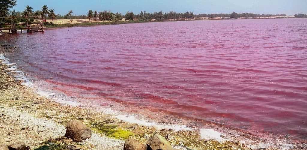 В окрестностях Дакара (Сенегал) расположено необычное озеро розового цвета – Ретба. По площади оно небольшое – всего 3 км², глубина – не более 3м. Когда-то это была лагуна, соединенная с водами океана неширокой протокой, которая постепенно заполнилась песком. Теперь это самостоятельный водоем с соленой водой.