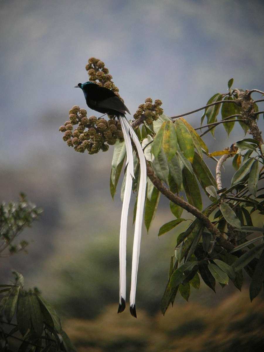 Еще одна райская птичка – ленточная (Astrapia mayeri) является обладательницей самого длинного хвоста среди остальных видов. Его длина в 3 раза превышает длину самой птички.