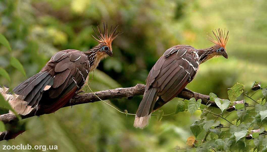 - Название Opisthocomus гоацины получили благодаря своему хохолку. С латыни оно переводится как «начес на затылке».