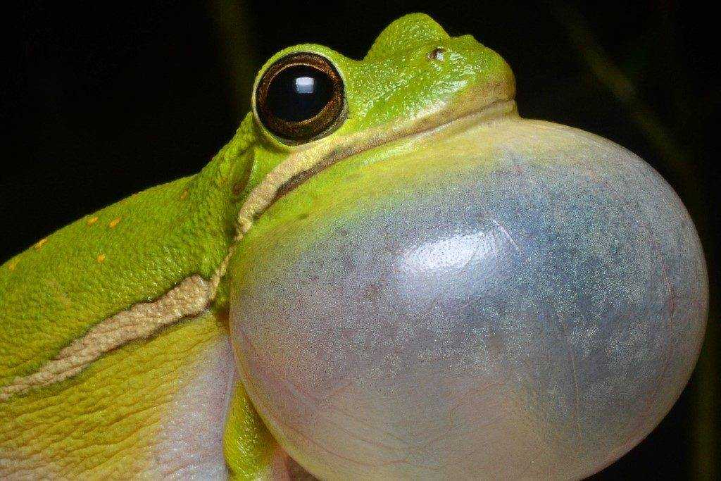 Кроме того, у самца квакши имеется особый орган, называемый горловой мешок, при надувании которого он издает звуки.