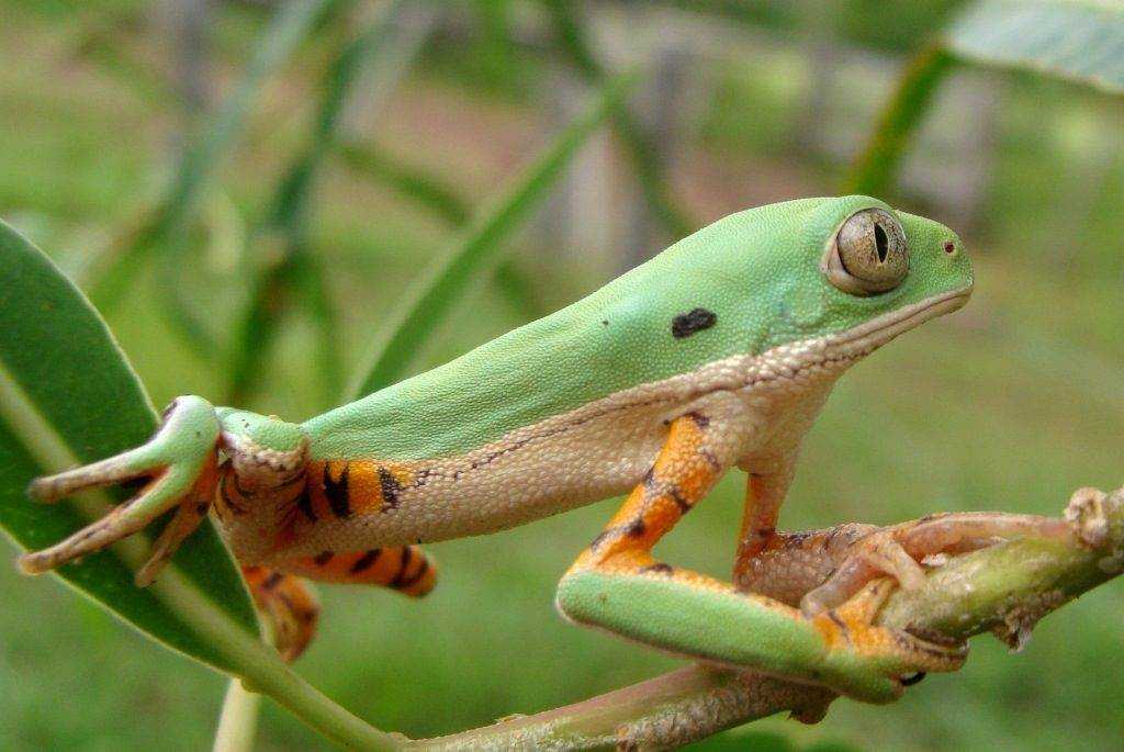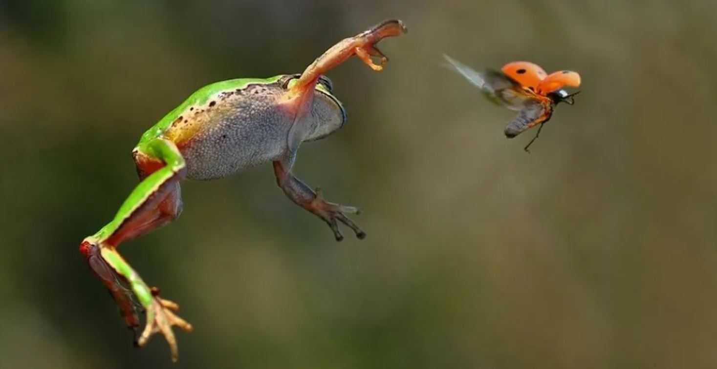 - Древесницы – настоящие рекордсмены по прыжкам в длину. Преследуя добычу, они могут совершать прыжки до 75 см. В это смысле особенно интересна чернопятнистая квакша. При длине тела в 3 см он может прыгнуть в дину до 1,5 м. Это сопоставимо с тем, как если бы человек среднего роста прыгнул на 80-100 м.
