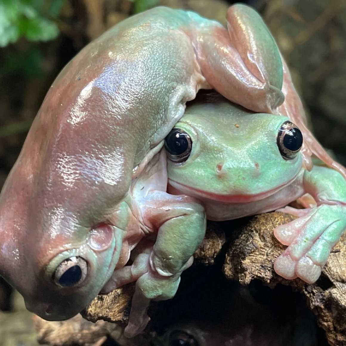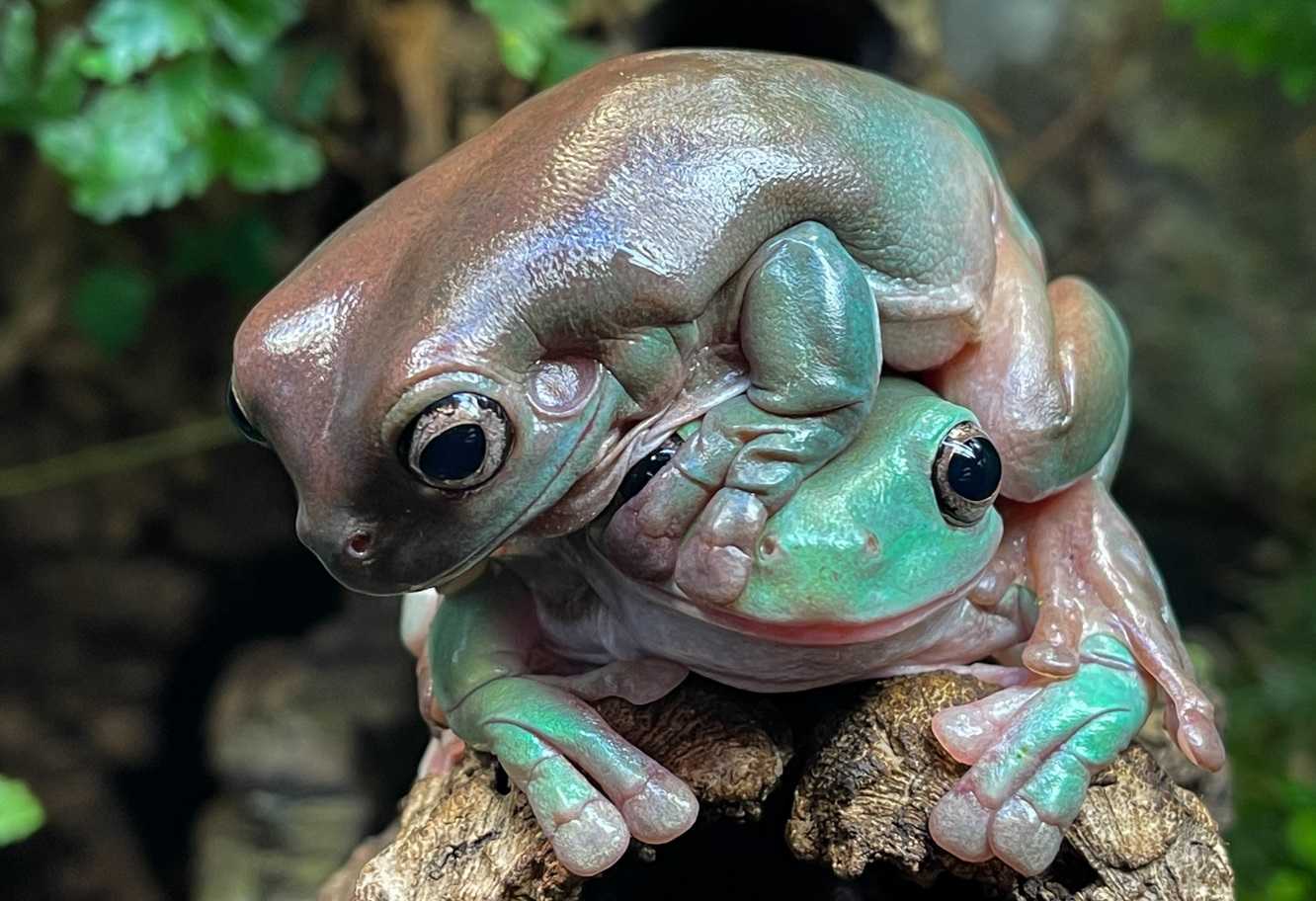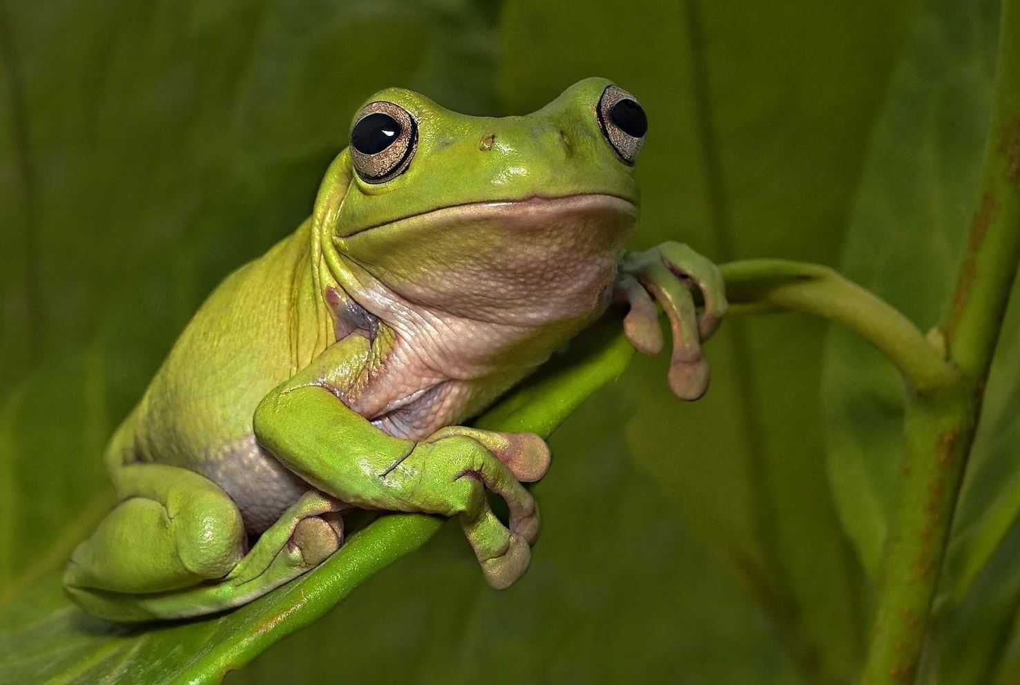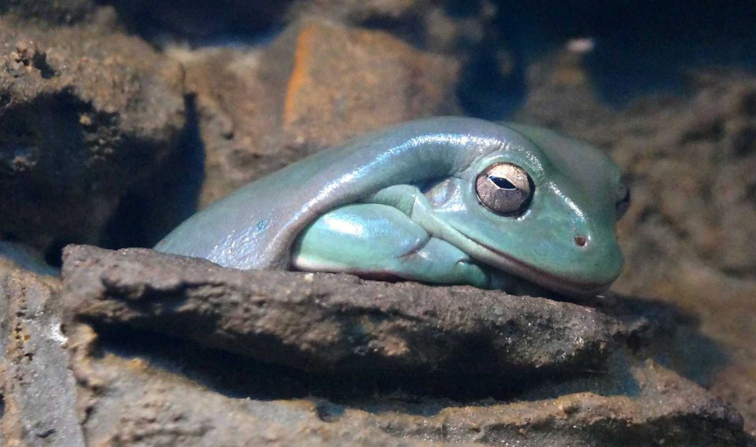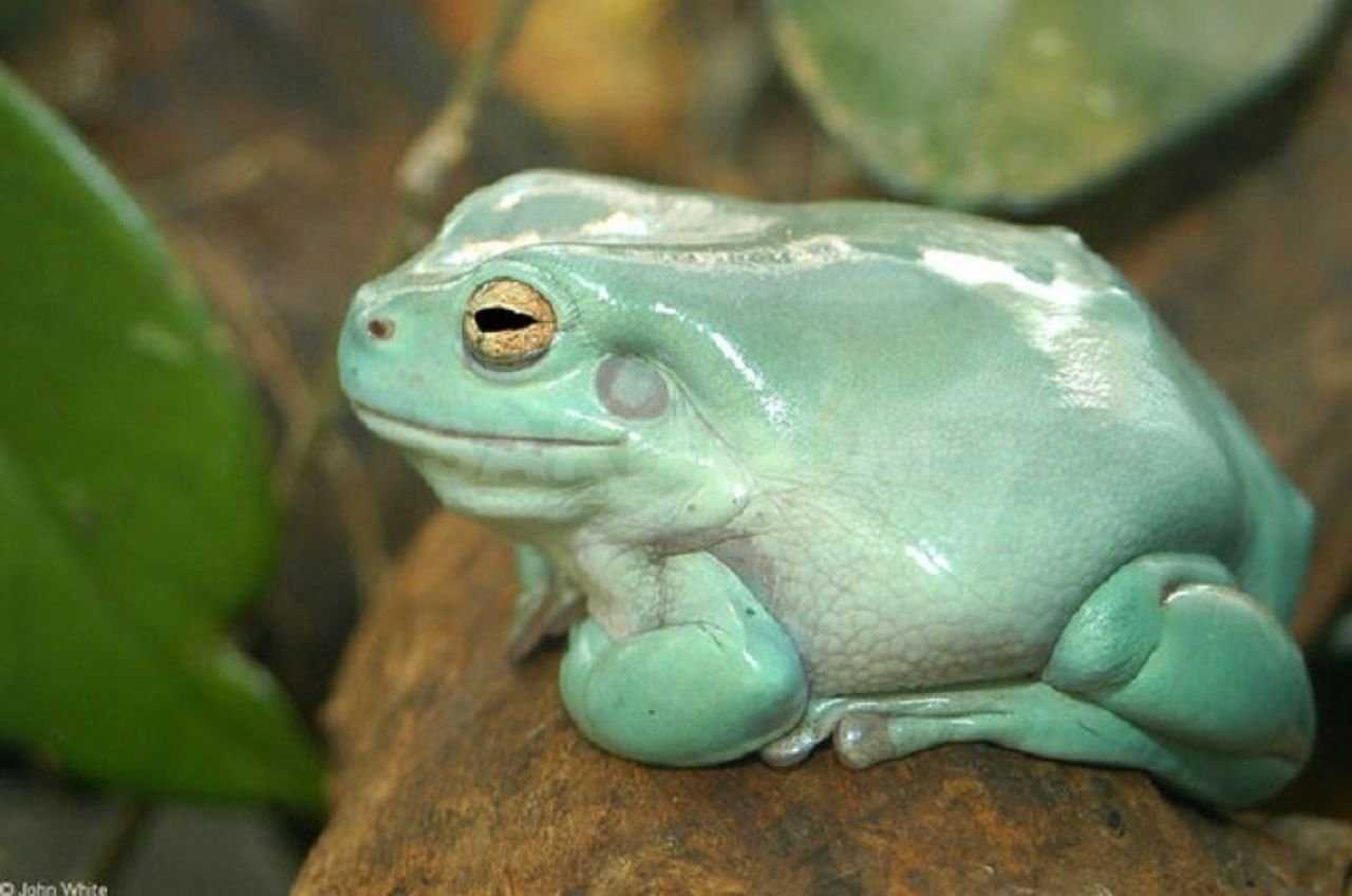 Голубая австралийская квакша — одна из самых крупных древесных лягушек на планете.Она весит до 25 г и вырастает в длину до 15 см.