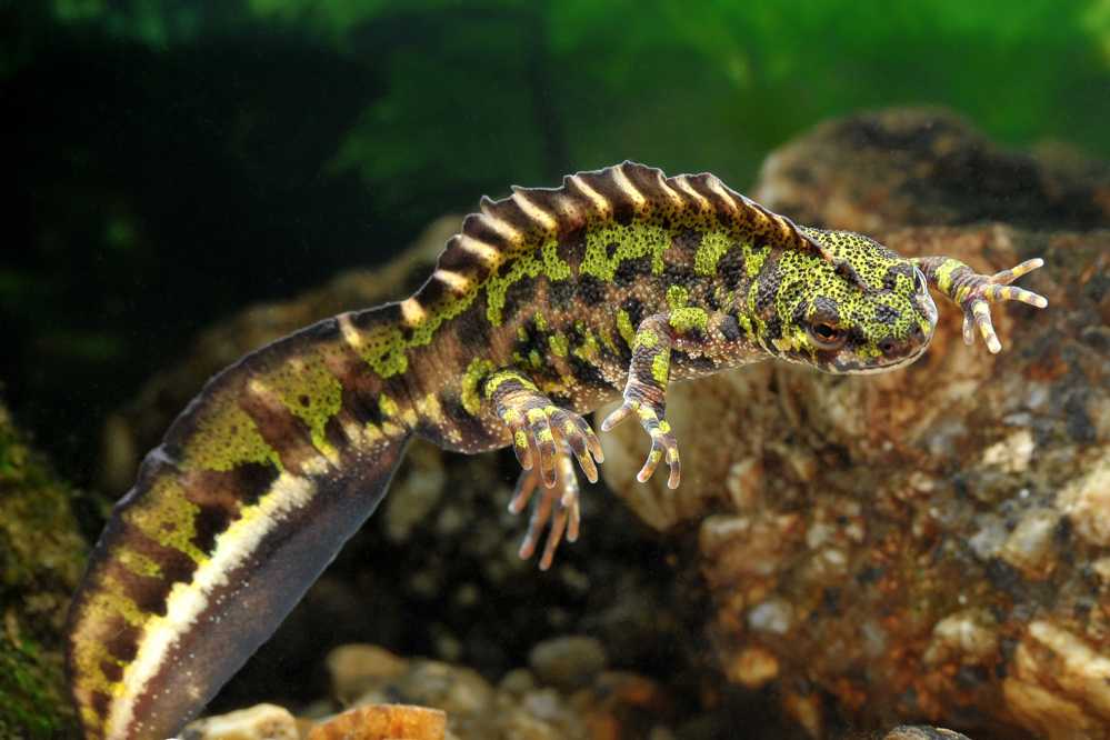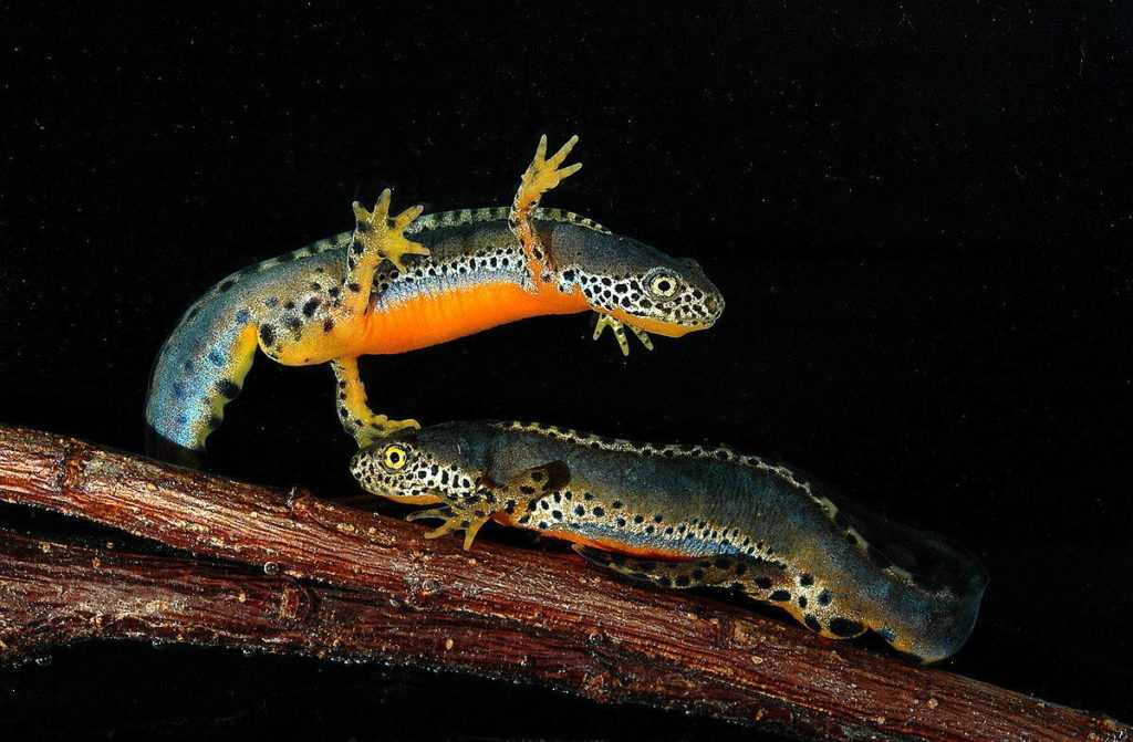 Альпийские тритоны приспособились охотиться как на суше, так и в воде.
