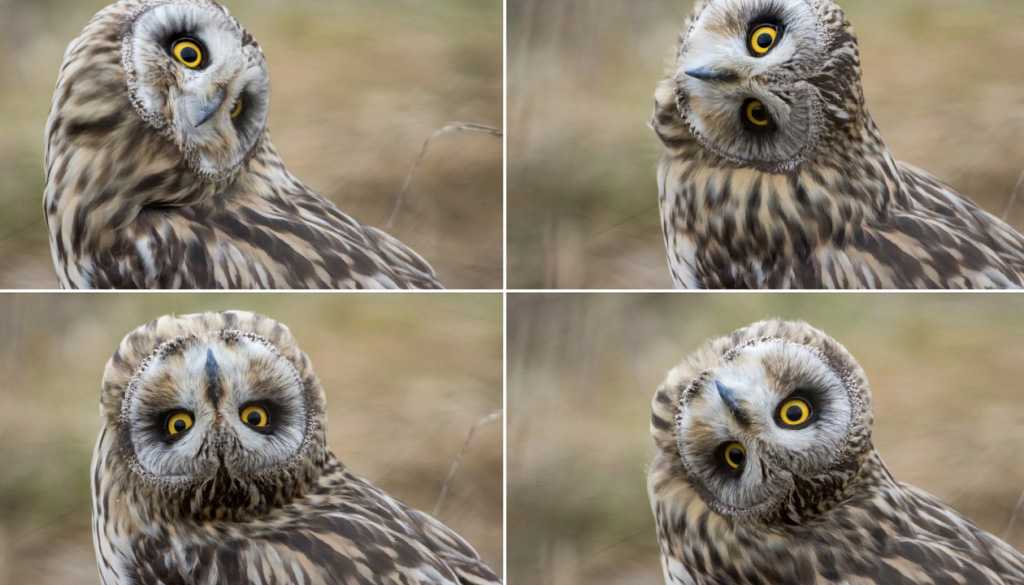Ночное зрение сов действительно потрясающе. В безлунную ночь в процессе полета она способна увидеть затаившуюся мышь среди травы. Практически весь объем ее головы как раз глаза и занимают. Кроме того, в процессе эволюции эти глаза приобрели цилиндрическую, а не шарообразную форму, напоминая бинокль, вставленный в череп, из-за чего сова не может шевелить ими, в отличие от нарисованных героинь всевозможных мультфильмов. Но по этой же причине у совы очень гибкая и подвижная шея: так она в состоянии по горизонтали повернуть ее на 270 градусов!