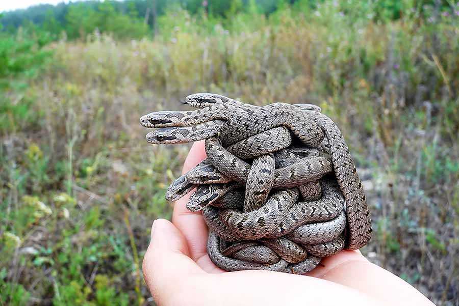 Мать несколько часов продолжает охранять свое потомство. Затем змейки расползаются в разные стороны.