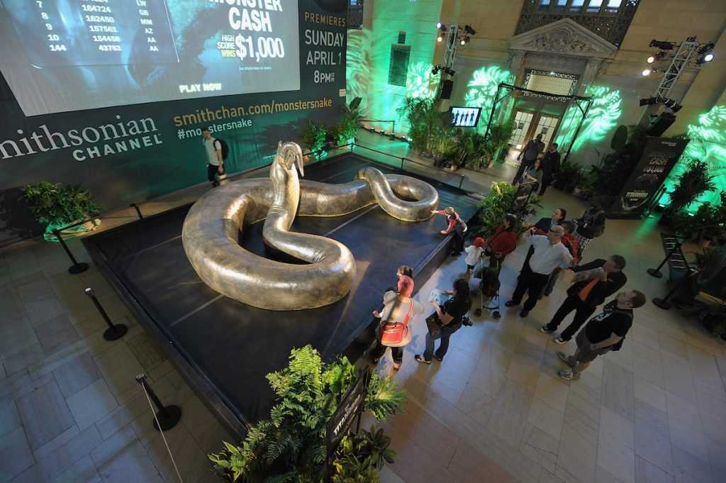 22 марта 2012 года в большом Центральном Терминале Нью-Йорка показали модель чудовищной змеи, размером 14,6 метра — а в пасти виден заглатываемый ей крокодил.