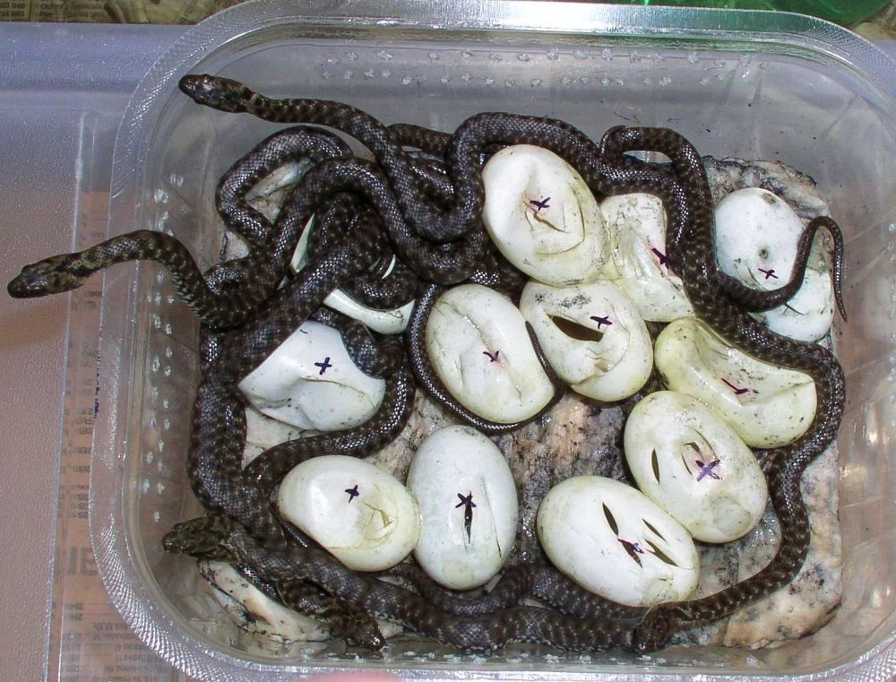 Время инкубации зависит от окружающей яйца температуры: чем теплее, тем быстрее на свет появятся ужата