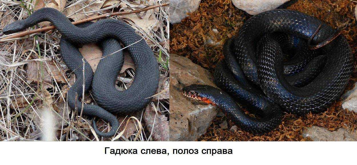 - У гадюки голова и тело разделяются укороченной перемычкой, имитирующей шею, у полоза шейный перехват отсутствует.