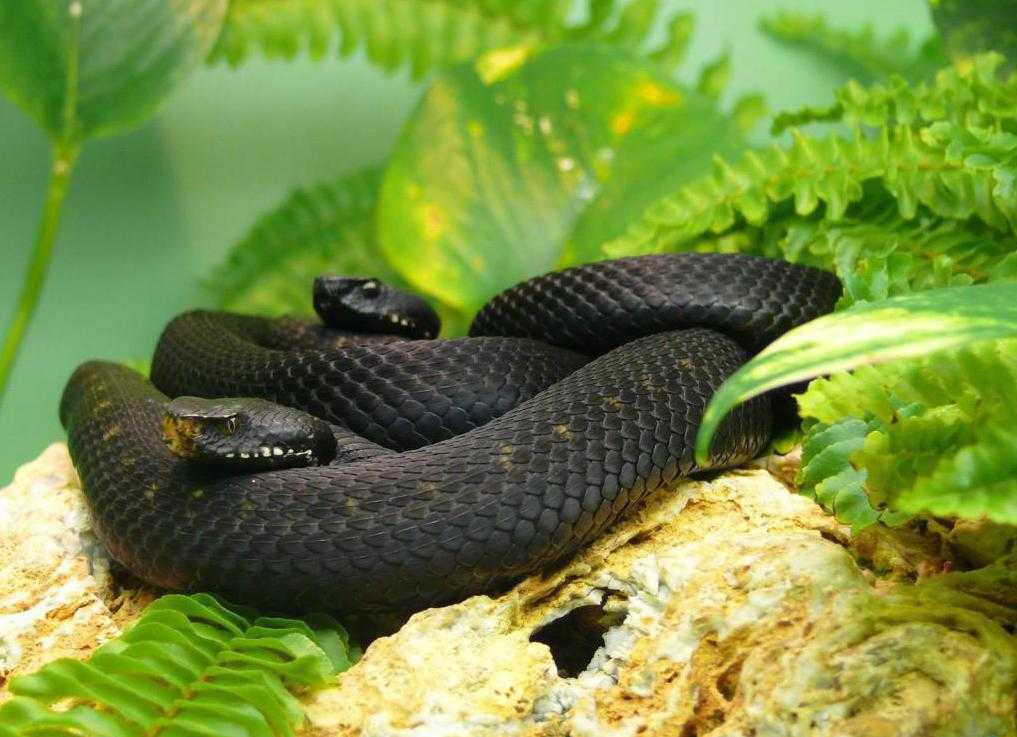 Это один из наиболее крупных видов гадюк. Взрослые особи способны достигать 4 метров при весе в 5 кг. Бушмейстер имеет оранжево-черный окрас и проживает на территории лесов США.