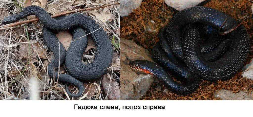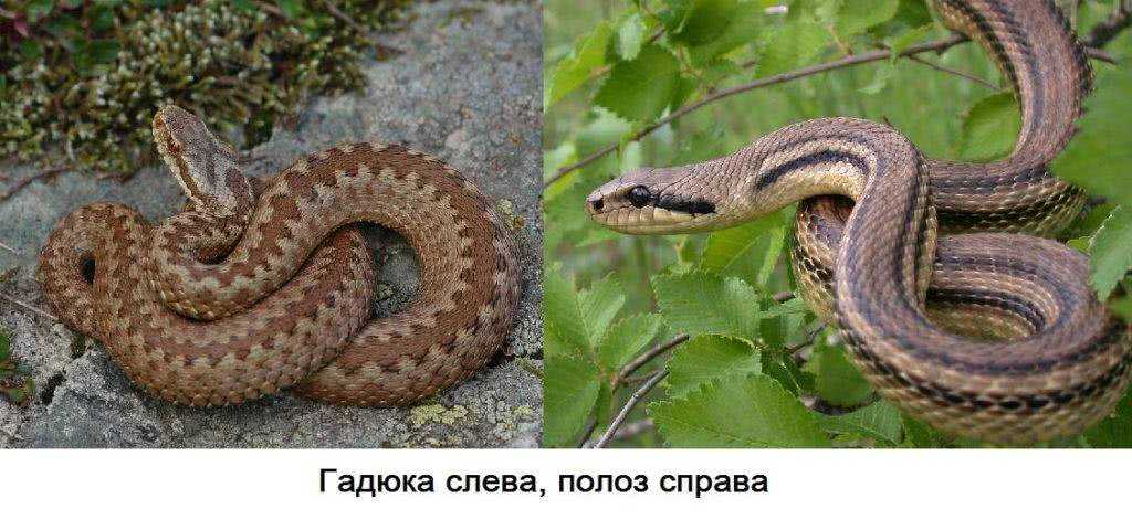 - У гадюки голова и тело разделяются укороченной перемычкой, имитирующей шею, у полоза шейный перехват отсутствует.