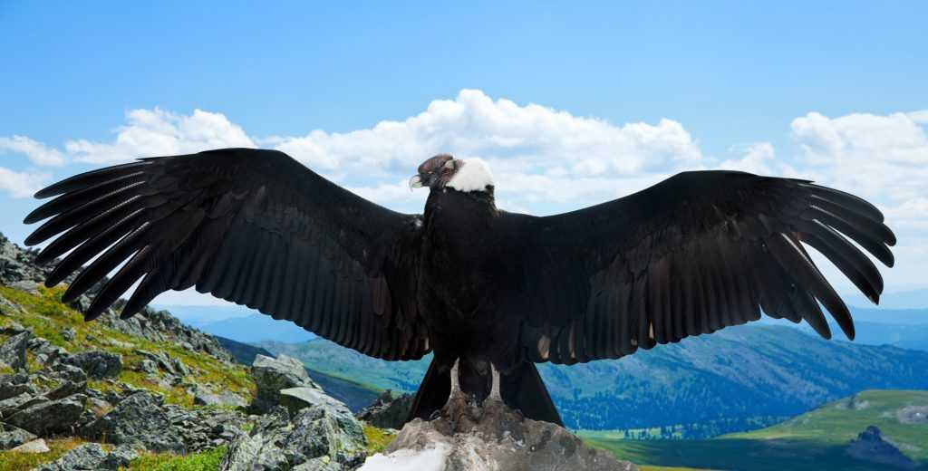 Масса его тела приблизительно такая же, как и у пеликана из предыдущего пункта, она равна в среднем 11-15 килограмм у самцов. Самки немного меньше – до 11 кг. В общем и целом, длина составляет 100 см минимум, размах крыльев тоже немаленький – до 3,3 м, большая отметка зафиксирована лишь у четырех видов птиц. К ним можно отрести альбатроса странствующего, королевского, пеликана розового и кудрявого.Андскому кондору отводится особая роль в мифологии, особенно в Андах и в близлежащих регионах. Поэтому неудивительно, что данное пернатое существо выступает в качестве национального символа многих стран – Колумбии, Аргентины, Перу и пр.