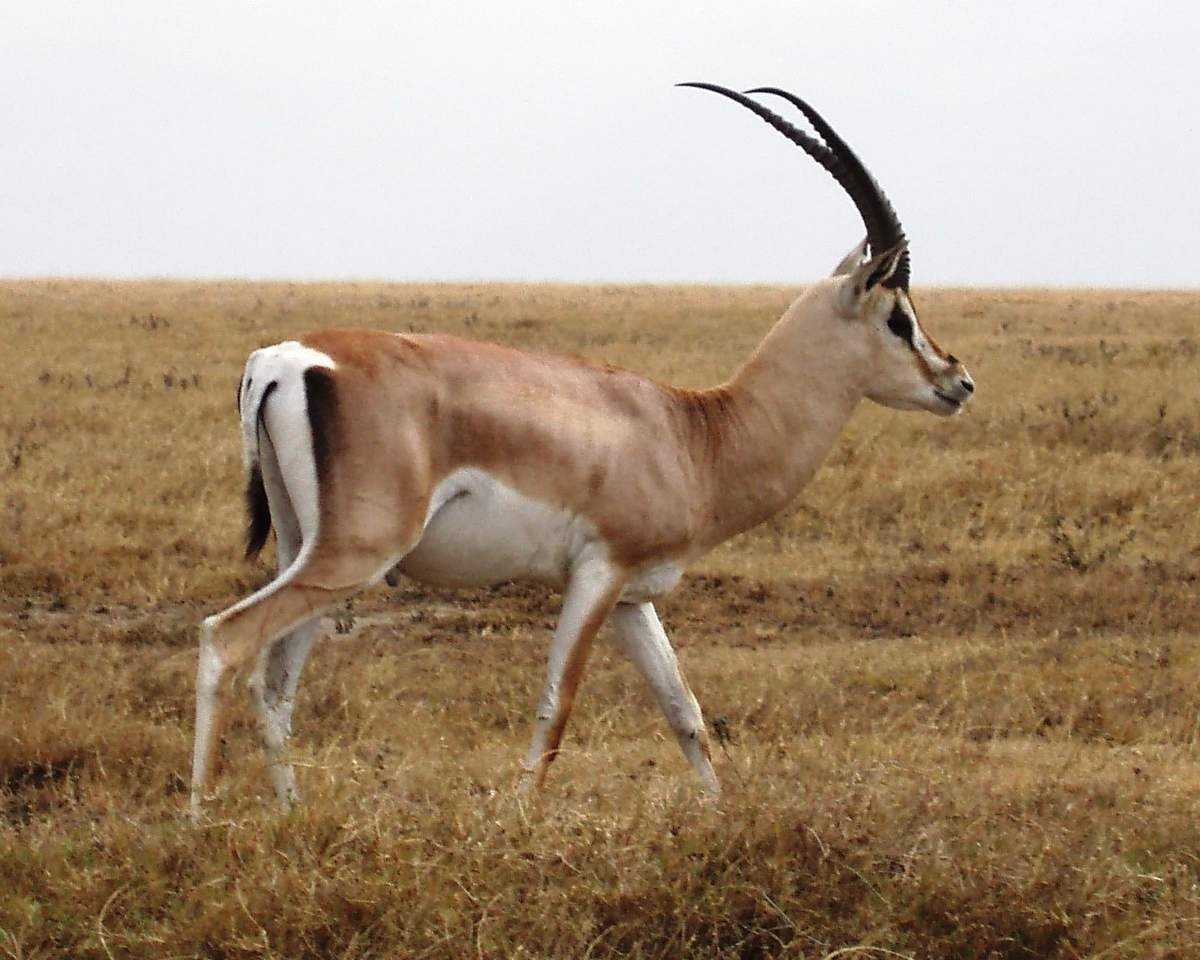 Газель гранта имеет светло-коричневый окрас, при этом живот у нее белый. Рога достигают в длину 50-80 сантиметров. У основания они более широкие, а к верху сужаются. Внешне кажется, что рога состоят из отдельных колец.