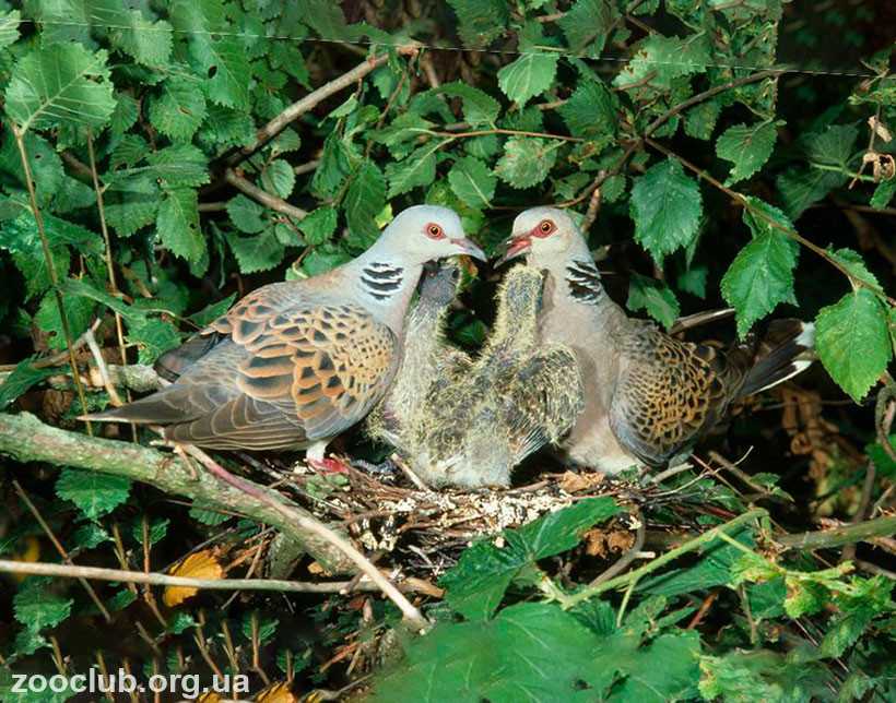 При большом скоплении горлиц гнёзда находятся на расстоянии 5 — 20 м друг от друга.