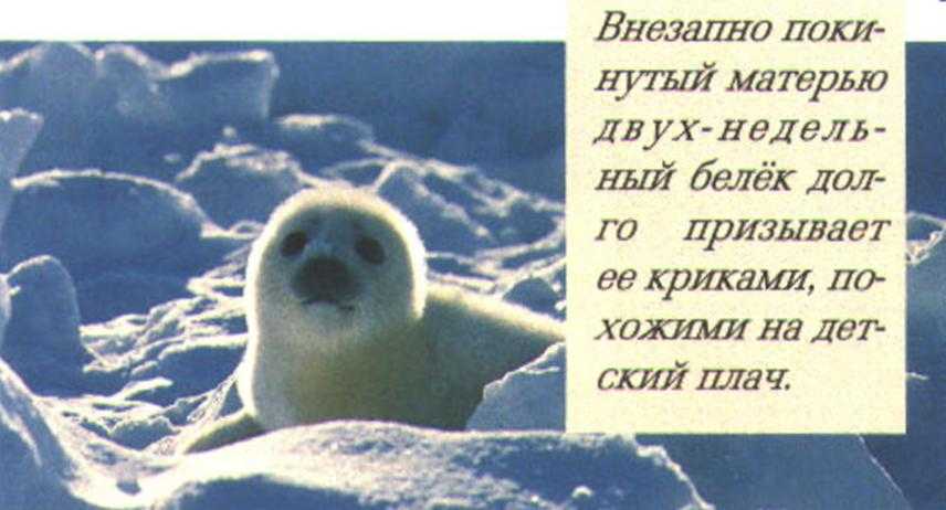 Внезапно покинутый матерью двухнедельный белёк долго призывает ее криками, похожими на детский плач.