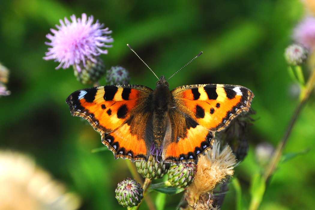Бабочка крапивница выглядит очень нарядно. Ее красновато-бурые крылья покрыты эффектными черными пятнышками, а внешние края крыльев украшены небольшими зубчиками и обрамлены яркой голубой каемкой. Размах крыльев крапивницы достигает до 5 см.