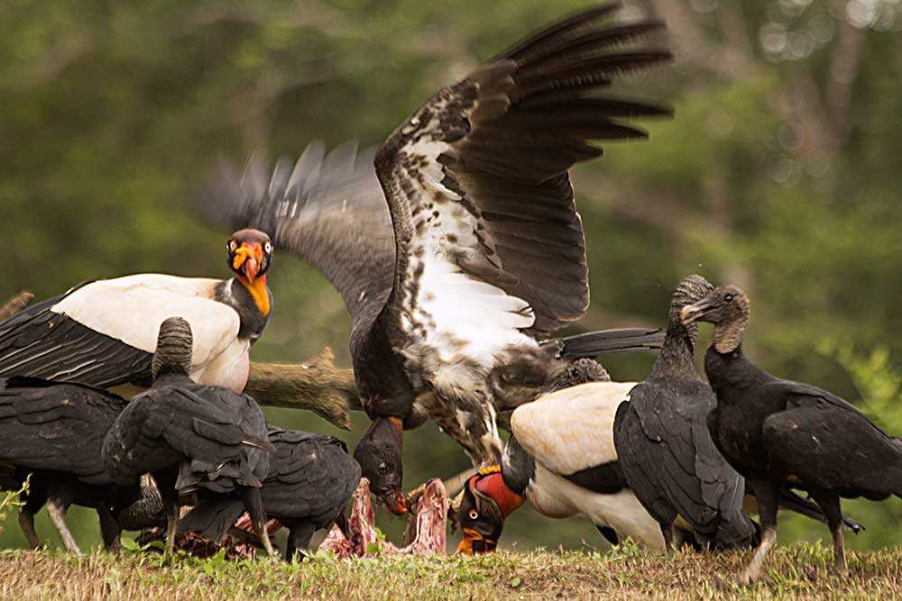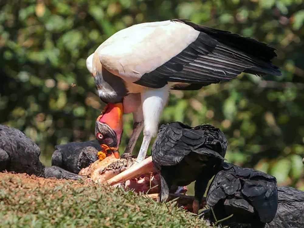 Королевские грифы — плотоядные и падальщики, питающиеся почти исключительно падалью, включая мертвую рыбу по берегам ручьев.